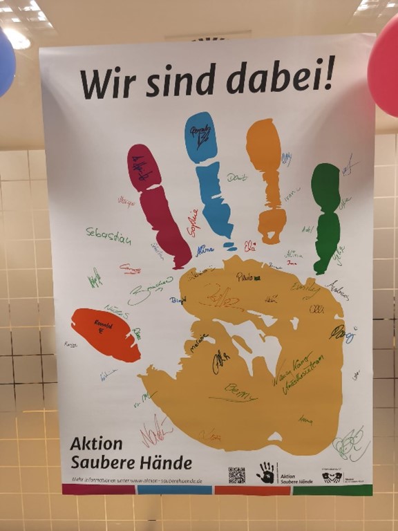 Zur Begrüßung durften sich alle Teilnehmer auf unserem Plakat „Wir sind dabei“ Aktion Saubere Hände verewigen.