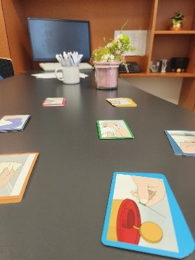 Neben der klassischen Händedesinfektion, gehörten auch die sichtbare Flächendesinfektion, Viren und Bakterien als modellhafte Beispiele, Kartenlegespiele und unser Highlight: VR-Brillen mit einem unterhaltsamen und interaktiven Spiel zu unserem Angebot.